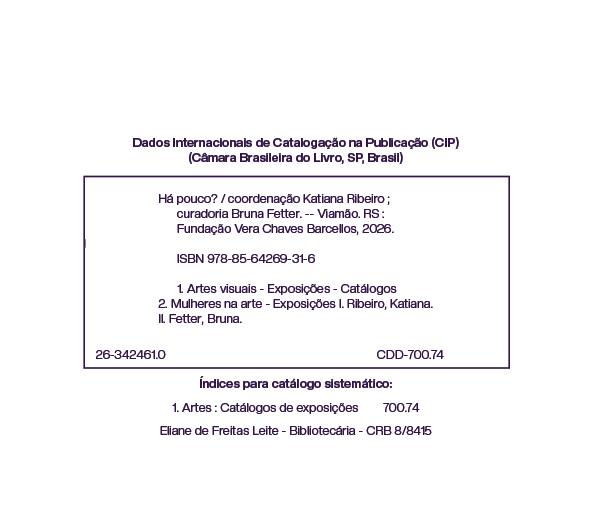Drawing on Maura Reilly’s 13 notion of polylogue, Há pouco? [So few?] seeks to move beyond previously established categories to expand the possibilities for engaging with the works on display. This only becomes possible within a context in which other researchers are dedicating themselves to monographic and niche exhibitions, according to Reilly’s own typologies of curatorial activism, generating knowledge and leaving a foundation upon which other initiatives may emerge.