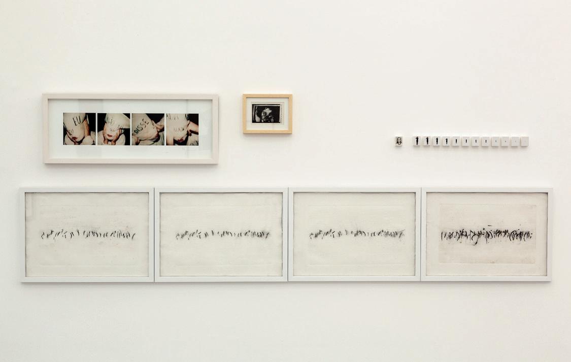 Não apenas como referência a este “eterno recomeço” profissional, que raramente reconhecia a atuação continuada e, logo, o amadurecimento de uma poética pessoal que ancorasse trabalhos significativos para as discussões da época, “há pouco” funciona, no contexto desta mostra, como uma dupla provocação. Para além do sentido cronológico de “há pouco tempo”, também em termos de representatividade, levando-nos a questionar a efetiva presença de artistas mulheres na coleção Artistas Contemporâneos da Fundação Vera Chaves Barcellos, que conta hoje com mais de 200 artistas mulheres, além de grupos/duos/projetos do acervo, entre eles, o coletivo argentino Instantes Gráficos², responsável pelo projeto ELLA (2014)³, que envolve 28 artistas4 mulheres. Em termos de quantidade de obras 5 , são cerca de 580 trabalhos assinados