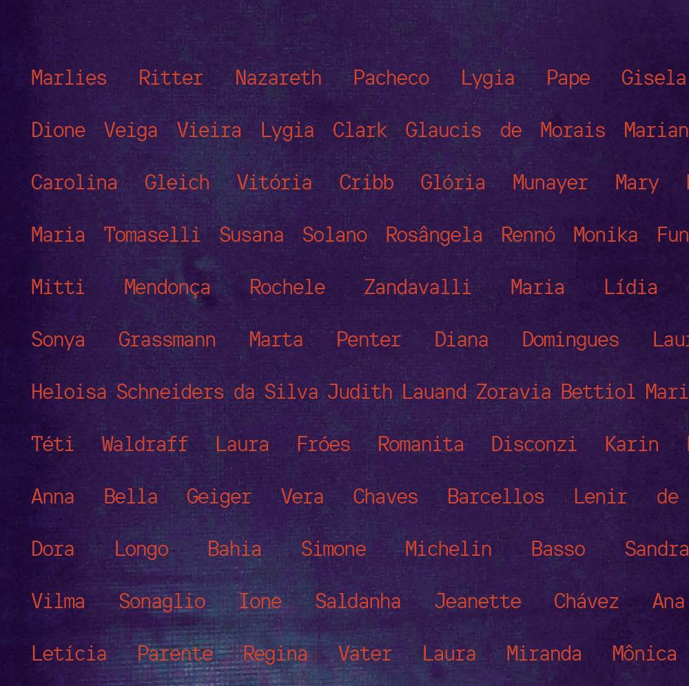 In addition to academic research, museums, cultural centers, and major events such as biennials have also sought to reduce the gaps left by decades of gender disparity in their programming directed toward broader audiences. As a result, exhibitions focused on this theme have been held in recent years. Without intending to provide an exhaustive mapping of such initiatives, it is worth highlighting here a few that, besides becoming landmarks in women’s artistic production over the past decade, have also served as references for the research underlying Há pouco? [So few?].