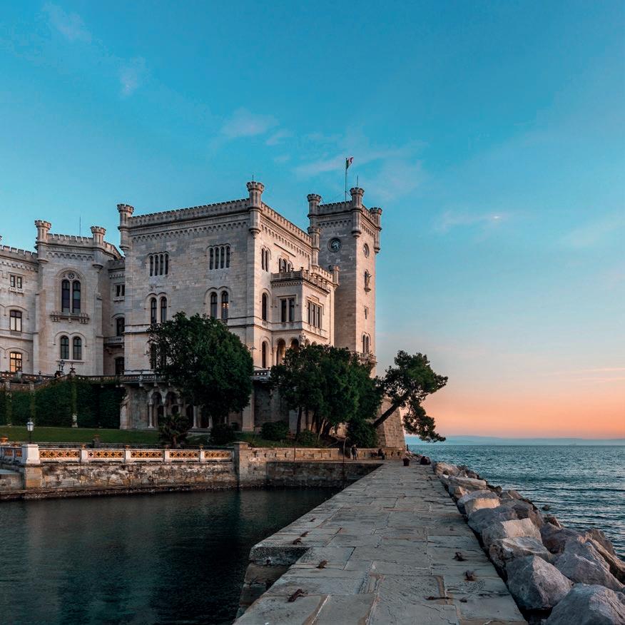 The most cosmopolitan city in Italy, with a Hapsburg history and a Mediterranean soul. Descending from San Giusto Hill, with its beautiful Cathedral and Roman-era remains, you can wander through the medieval city until you reach Piazza Unità d’Italia. This is the vibrant heart of Trieste, surrounded by stunning historic buildings and majestically overlooking the sea, complete with the Molo Audace pier. The view includes monuments, churches and the impressive Miramare Castle in the distance.