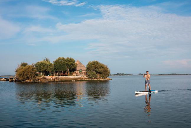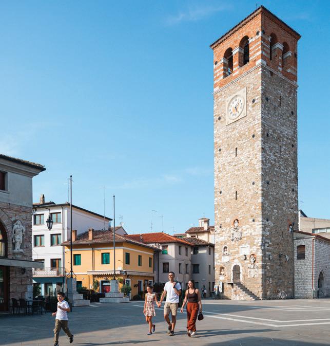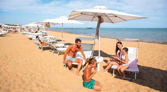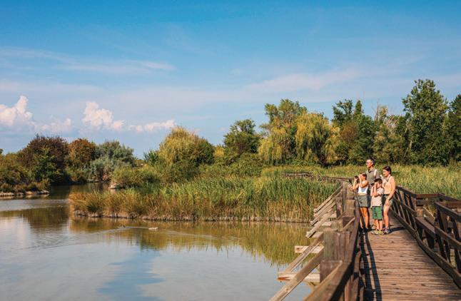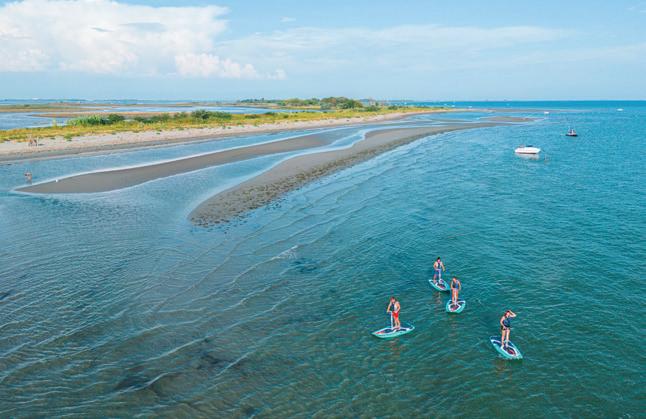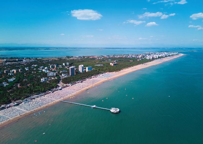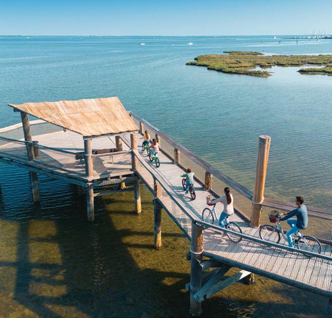 divertimento. Per ciclisti di ogni età, oltre 75 chilometri di itinerari ciclabili e una rete di oltre 30 chilometri di piste permettono di ripercorrere l’area costiera fino all’entroterra, attraversare profumate pinete, pedalare verso scorci lagunari o sulle rive del Fiume Tagliamento, dove il passo barca cicloturistico X-River accompagna i viaggiatori da una sponda