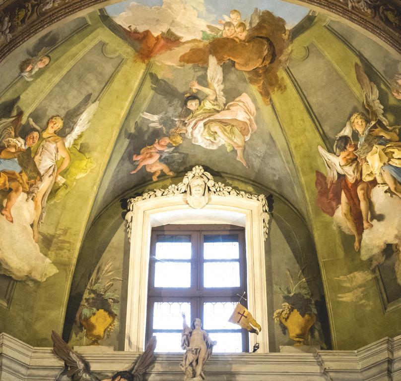 altro capolavoro tiepolesco: il soffitto con l’Assunzione della Vergine. Nei Civici Musei in Castello sono visibili tre opere: “L’Angelo Custode”, “San Francesco Di Sales”, l’ “Allegoria della Virtù e della Nobiltà che trionfano sull’Ignoranza” e il “Consilium in arena” eseguito in collaborazione da Giambattista e dal figlio Giandomenico.