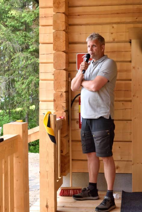 Kunnanjohtaja Timo Kiviluoma toi tilaisuuteen kunnan tervehdyksen ja toivotti pitkää ikää uudelle savusaunalle. Yksityiskohtana mainittakoon, että Timolle maistuivat savusaunan löylyt toisin kuin aiemmille kunnanjohtajille. Lupauksia on kuultu,mutta Timo on ainut, joka onsanansapitänyt.