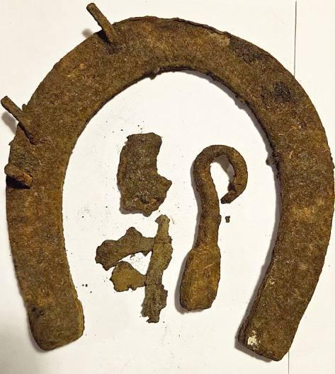 Etsintöjen sivutuotoksena löytyi myös muita esineitä, kuten hevosenkenkä ja jokinkoukunmallinenkappale. Kuva: OsmoPuurunen.