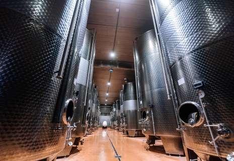 this just meant bare walls all around. When the first bunches arrived to the cellar parts of the roof were still missing and some sections had no lightings installed. At the gates trucks loaded with grapes and trucks loaded with concrete were vying for entrance. The available power sources were insufficient to operate the crane and the press at the same time. In the two month long period of the harvest the steel fermentation tanks were moved sixteen times.