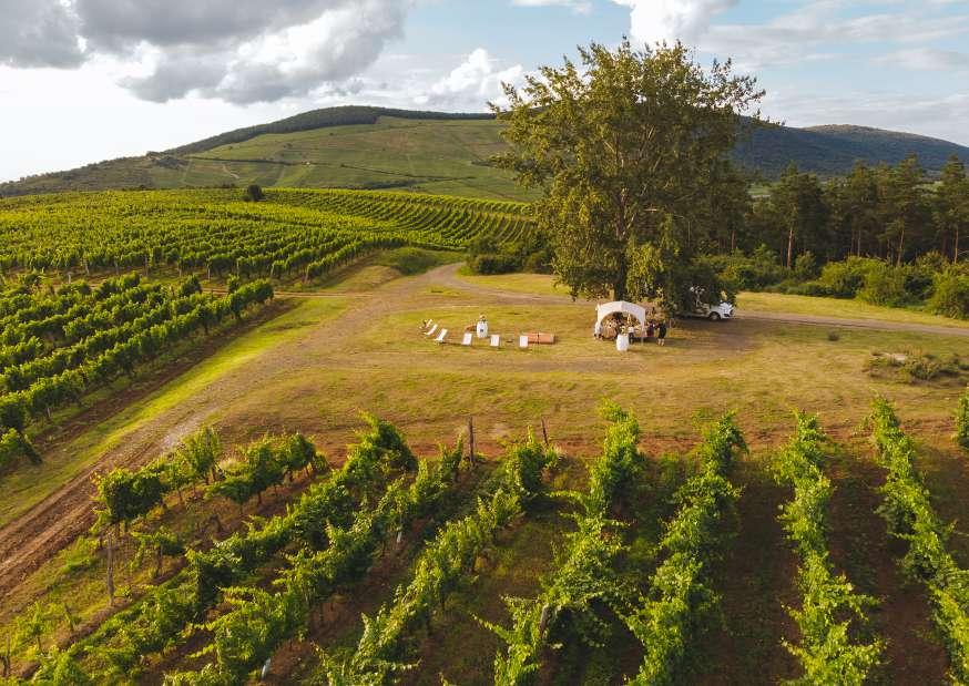 It was an age-old dream of ours to make this spot accessible to visitors so that we could taste the wines we produce together. We have found that it is a totally different experience to taste wines among vineyards regardless of the season. Be it the