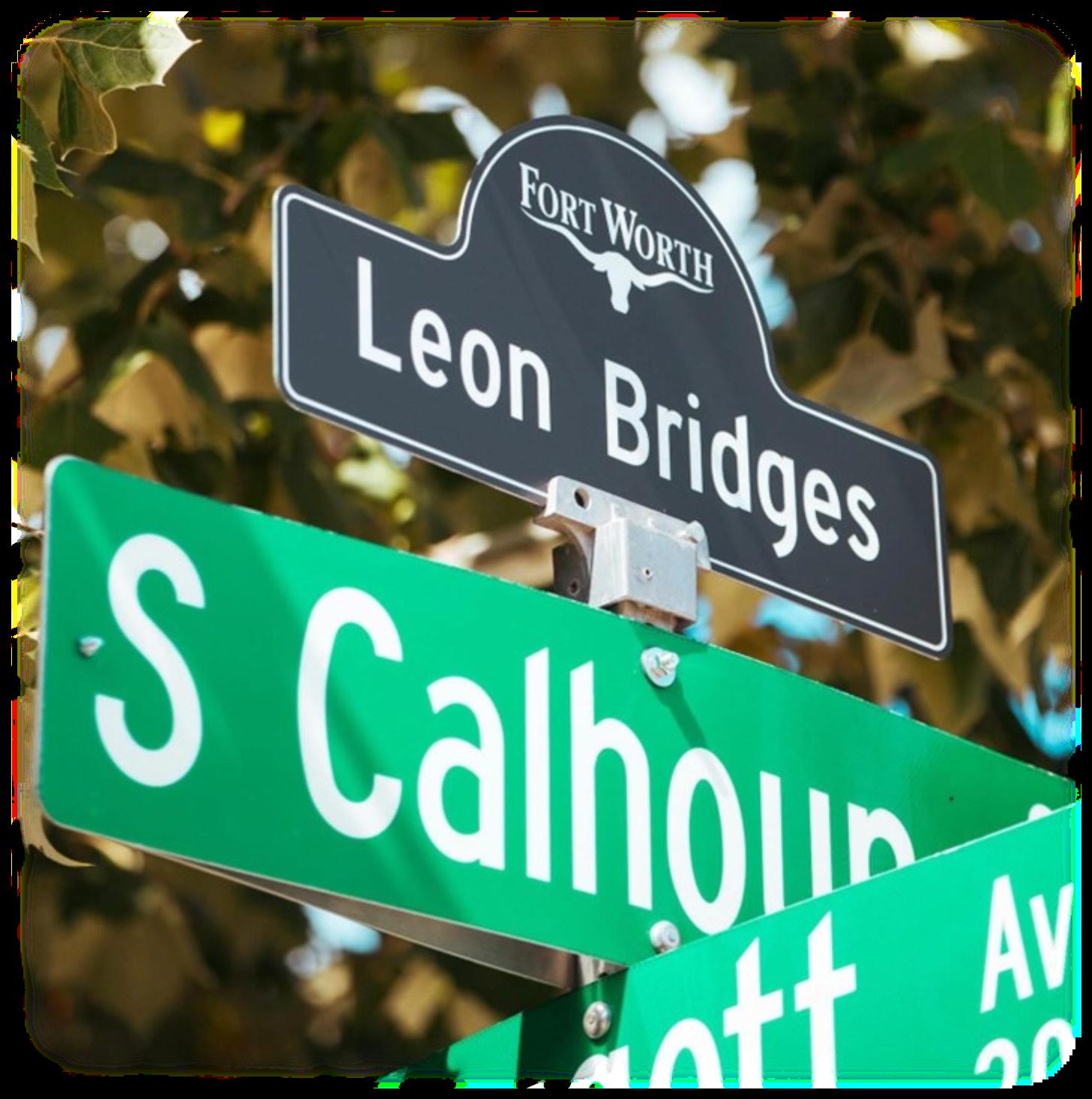 Fort Worth’s own Grammy-award winning Leon Bridges came home to help unveil permanent street sign toppers in Near Southside. Located at the 200 block of South Calhoun Street and surrounding area, his name reminds the city this is the place where it all started.