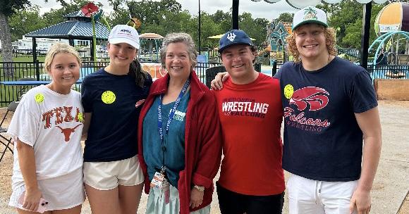 Creel Family Philanthropies, founded by Whitney Baggett Creel ’04 and her husband, Todd, hosted the 2025 Cowtown Summer Soirée and raised over $500,000 for the Leukemia & Lymphoma Society’s Dare to Dream Pediatric Fund. Pictured are FWCD parents Lindsey Rosenstein, J Mack Slaughter ’02, Kate Strickland Jennings ’04, Todd and Whitney Creel ’04 and Lisa Slaughter Stovall ’99