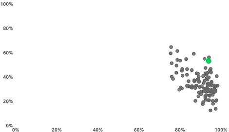 Certainly, the percentage of economically disadvantaged students a school serves has historically been strongly correlated with student proficiency, a pattern often referred to as the Achievement Gap or, more recently, the Opportunity Gap However, it’s equally true that even among schools serving similar student populations, we see a wide variation in outcomes, including right here in Fort Worth