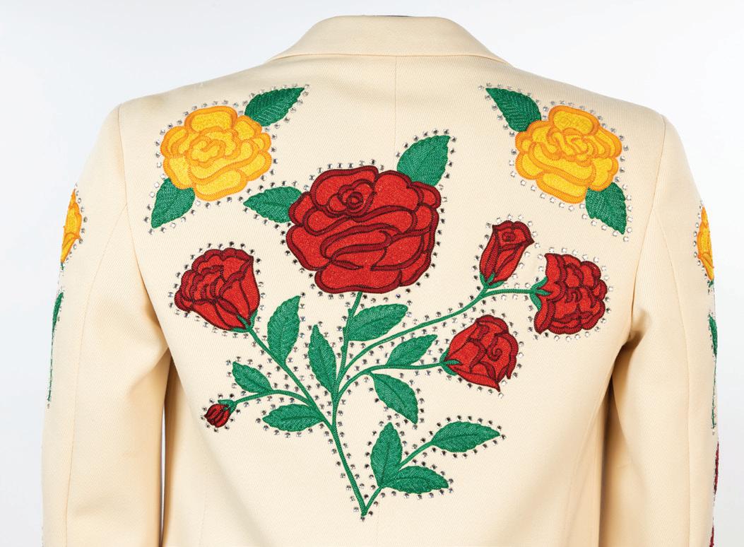 This rose-embroidered Nudie suit designed for Chris Ethridge and immortalized on the Flying Burrito Brothers album cover The Gilded Palace of Sin was stolen in 1969 and considered lost to history. It led a stunning subsequent second life, hiding in plain sight, and is now reunited for the first time with the other three Nudie suits from that foundational band.