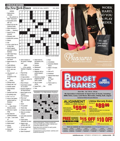 Online subscriptions: Today’s puzzle and more than 9,000 past puzzles, nytimes.com/ crosswords ($39.95 a year). Read about and comment on each puzzle: nytimes.com/wordplay.