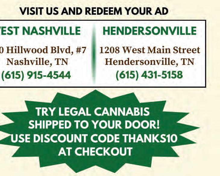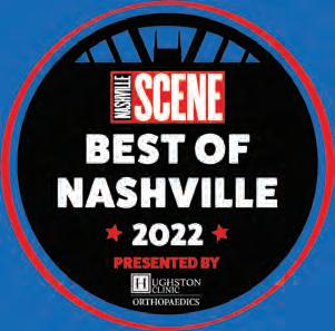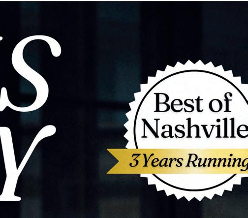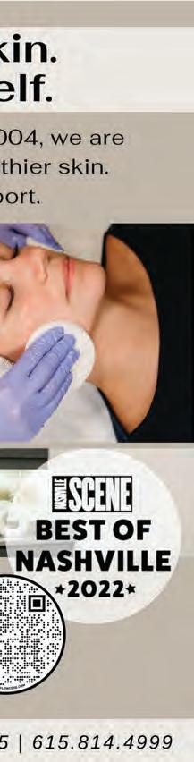 NASHVILLE SCENE • OCTOBER 12 – OCTOBER 25, 2023 • nashvillescene.com 3 NASHVILLE Convenient Location in Midtown Woodhouse Nashville | 2001 Division Street | Nashville, TN 37203 | 615.717.7511 OFFERING COMPLIMENTARY Valet Parking / Champagne / Mimosas / Specialty Tea / Chocolate Therapeutic Massage | Body Treatments | Bath Treatments | Hydrafacial | Facials RELAX - RECENTER - RESET BEST SPA AND BEST MASSAGE