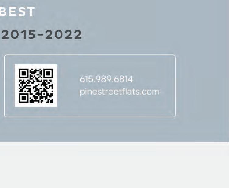 8 NASHVILLE SCENE • OCTOBER 12 – OCTOBER 25, 2023 • nashvillescene.com Five generations of leadership in printing, publishing, distribution, and training. @rhboydco • www.rhboyd.com 1-877-4RH-BOYD • 6717 Centennial Blvd., Nashville, TN 37209 Member of: Congratulations to the 2023 Best of Nashville Winners! Scan the QR code to visit rhboyd.com to learn more about our history, products, services, and community events, such as the Legacy Ball. Dr. LaDonna Boyd Fifth-generation President/CEO