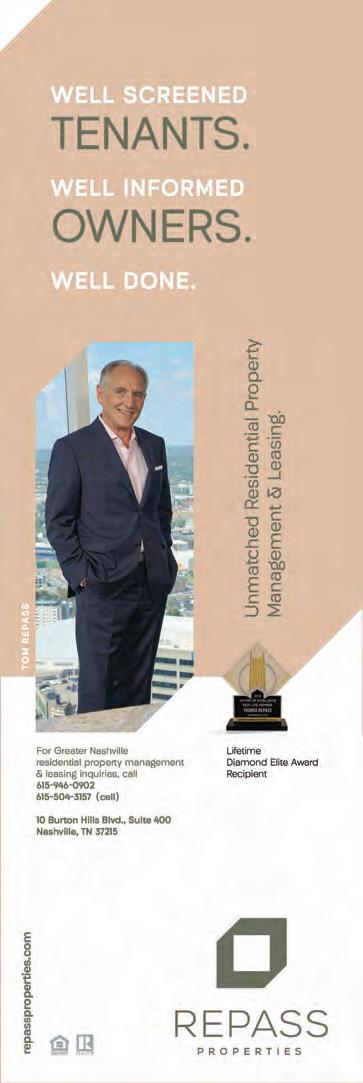 12 NASHVILLE SCENE • OCTOBER 12 – OCTOBER 25, 2023 Real Estate, Property Management & Interior Design Therese Winnington 61 5. 545 . 8700 ( ALSO LICENSED IN ALABAMA) ~TRIPLE THREAT~ Top Individual Leasing Agent 3 Years in a Row and Diamond Elite 3 Years in a Row GNAR T. LEWIS REAL ESTATE & DESIGN LLC