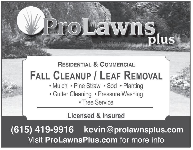 TREE SERVICE TREE SERVICE R. H. Callis & Sons Inc. Roofing, Siding, Metal, Slate, Flat Roofs. 37 years experience References. (615) 969-7717 (615) 876-0626 CallisRoofing.com License, Bonded & Insured ROOFING Need Prayer? If you are in need of prayer, call 888-388-2683 The Billy Graham Evangelistic Association will have prayer partners available to talk with you 24/7. PRAYER Mt. Juliet Plumbing and Leak Detection “Beariffic Plumbing Repair Service!” Local Licensed experienced Plumbers (615) 733-5665 PLUMBING Carter Plumbing Commercial & Residential New Installation & Repair Service Drain Cleaning Service Licensed, Bonded & Insured All Work Guaranteed! (615) 232-9051 PAINTING/PAPERING I HAUL ANYTHING - Since 1990Deliveries, Estate Property Clean Outs, Brush & Appliance Removal, Construction Waste, Demolition & more... No Job Too Small! Wyatt Mallonee (615) 499-2218 MOVING/HAULING Green Hills Lock & Key Servicing the area since 1974! Deadbolts Installed Locks Re-keyed • Lockouts Locks Repaired & Serviced (615) 269-3616 LOCKSMITH JUNK HAULING & DEMOLITION Junk Hauling •Appliances •Yard Waste •Household Items •Construction Debris Demolition Full or Partial Removal •Houses •Sheds •Carports •Buildings (615) 885-1736 JUNK REMOVAL Complete Home Repair & Improvements Native Nashvillian in business since 1992. Additions, Decks, Window Replacement, Furniture and Playground Equipment Assembly. All Types of Repairs. Licensed, Bonded, Insured Call Bob (615) 300-5558 HOME IMPROVEMENT Goodfred Window Cleaning Gutter Cleaning Gutters • Downspouts Cleaned Debris Removal • Gutter Guards Gutter Repair (615) 382-5127 GUTTERS LANDSCAPE Hardwood floors, cleaned, waxed, buffed, sanded and/or refinished. Over 75 years in flooring. Corlew & Perry, Inc. (615) 832-0320 Fresh flowers, silk / wreaths, plants, lanterns, cemeteryvases, Spa gifts, custom work. In Full Bloom Flowers 3970 Dodson Chapel Road Hermitage, TN 37076 615-883-3989 FLORAL/EVENTS FLOORING Are you looking for a dependable caregiver or sitter. Honest, hardworking, trustworthy, reliable. Light housekeeping, running errands, doctors appointment a.m. or p.m References upon request. Ms. Batey (615) 578-8664 ELDERLY CARE (615) 298-1500 (615) 298-1500 CLASSIFIED Land C Clearing 615-419-0553 Ramlandclearing.com • Extreme Yard Cleaning • Rock Driveway Service • Forestry, Mulching Service • Stump Extraction • Bush Hogging INTERIOR • EXTERIOR • PRESSURE WASHING FINISH CARPENTRY • DRYWALL REPAIR TRIM REPAIR • CEILING DOCTOR Excellent local references FREE ESTIMATES Michael Ferrera 615-308-0211 Michael Ferrera 615-308-0211 Trees Trimmed / Removed Stump Removal, Great Clean-up Senior & Single Parent Discount Licensed & Insured, Free Estimates All Major Credit Cards Accepted 615-456-9824 www.gisttreeservice.com 24/7 EMERGENCY SERVICE HAZARDOUS WORK Wood Tree Service formerly Gist Tree Service WE BUY RECORDS 45ʼS, 78ʼS, LPʼS Donʼt “give them away” at a yard sale. Any Size Collection No Problem. Also Buying Old Windup Phonographs Call Paul 615-953-7388 Paying TOP DOLLAR Over 45 Years WE BUY RECORDS 45’S, 78’S, LP’S Donʼt “give them away” at a yard sale Any Size Collection No Problem Also Buying Old Windup Phonographs Call Paul 615-953-7388 Paying TOP DOLLAR Over 45 Years Liner ad example Display ad example W E B U Y R E C O R D S 45’S, 78’S, LP’S Donʼt “give them away” at a yard sale Any Size Collection No Problem Also Buying Old Windup Phonographs Call Paul 615-953-7388 Paying TOP DOLLAR Over 45 Years THE REMODELING SPECIALISTS 3 7 Y e ar s o of R Re mo de li ng E xpe r ie nc e For All Of Your Home Renovation Needs www.broderickbuilders.com 615.385.3210 • Extensive reference list • Licensed & Insured 42 Years of Remodeling Experience PETS Great Pyrenees Puppies Pure breed. These pups love cats! Only $100. Text for pics (615) 496-0012 LANDSCAPE Get Results, Advertise Your Business in the News! Call 615-298-1500 to place an ad All Seasons Window Cleaning Specializing in residential windows. Serving Nashville over 38 yrs! Licensed - Bonded - Insured Free Estimates Low Prices (615) 889-9164 WINDOW CLEAN Chair caning and all styles of weaving. Wicker repair available. Pick up and delivery. The CANE-ERY (615) 269-4780 / 414-5655 WICKER REPAIR Music Teacher– Voice Coach Come to endless sunshine where everyone knows your name. Ground floor opportunity, Sebring, Fla. Resume listing your needs and wants. conduitforwords@gmail.com MUSIC SERVICES LAND CLEARING
