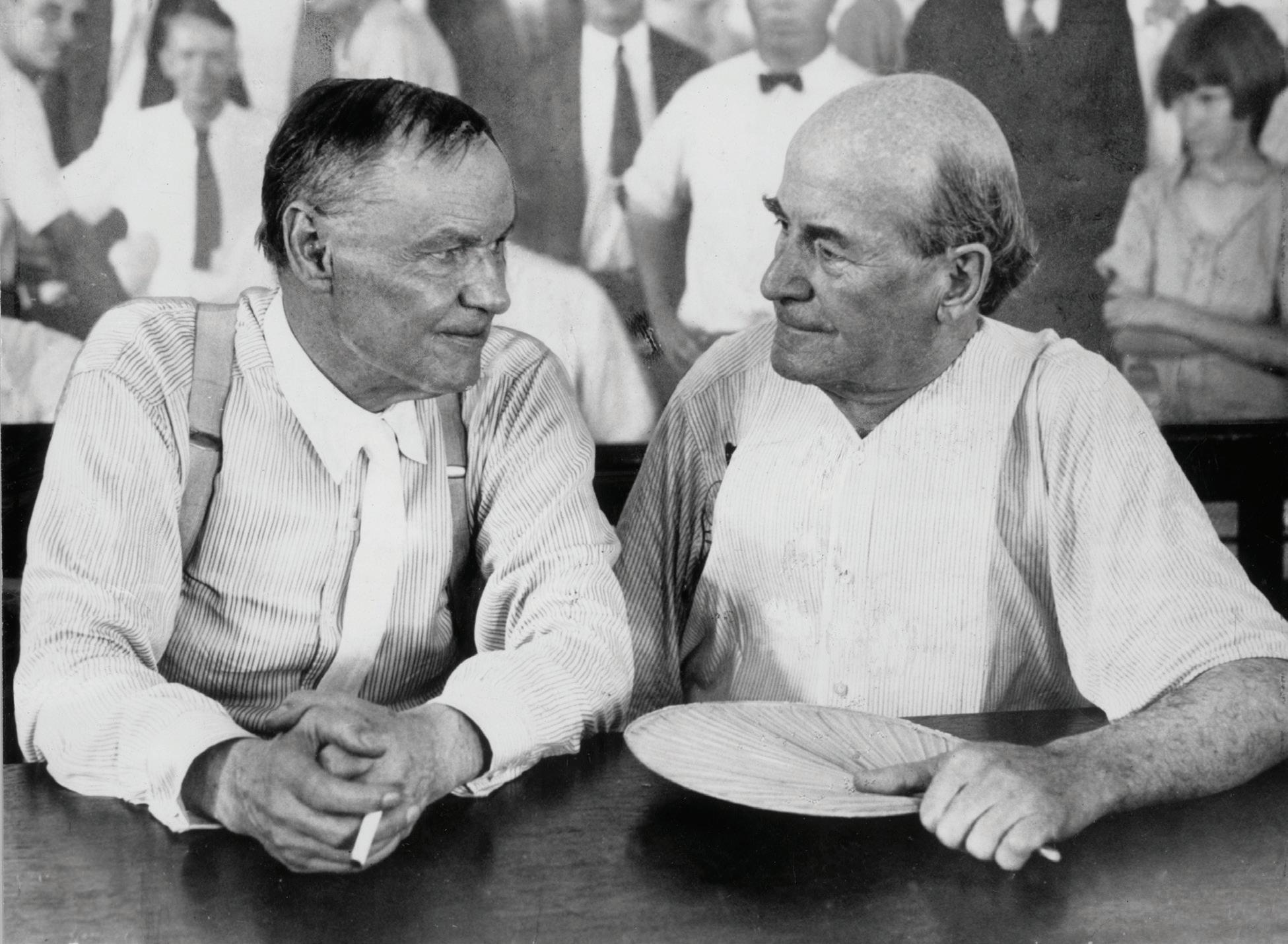 Clarence Darrow questions William Jennings Bryan during the Scopes “Monkey Trial” in Dayton, Tenn., July 1925. Photo: Hulton Archive/Getty Images.