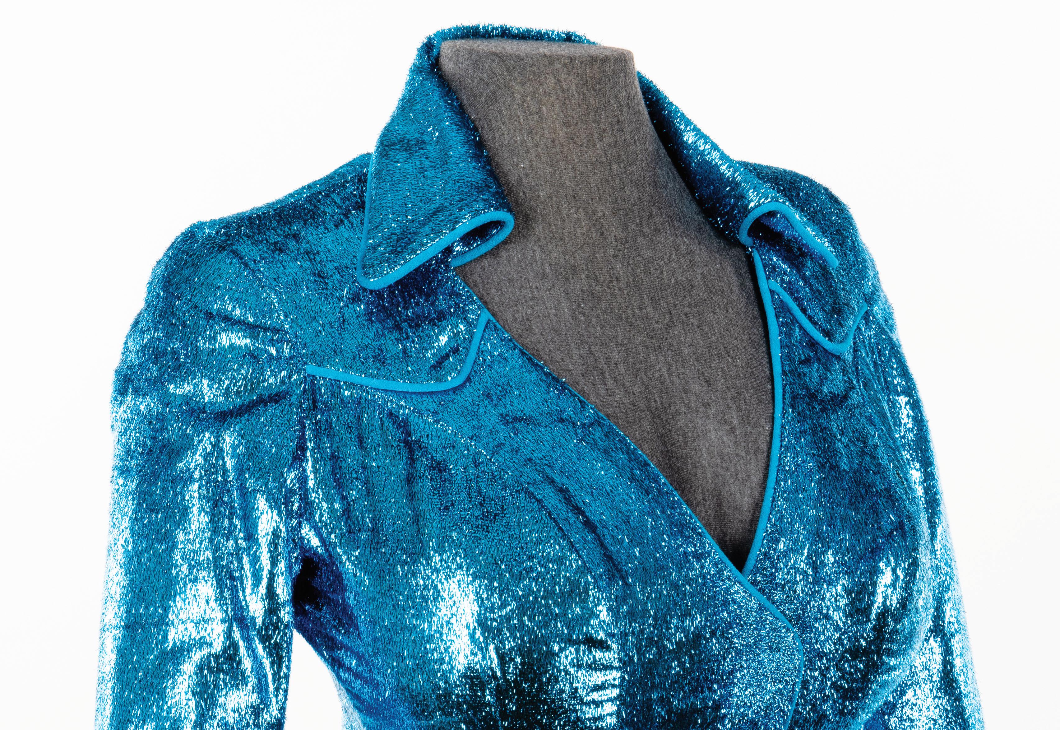 Dolly Parton wore this Debra McGuire-designed lamé top and fringed suede skirt when she was inducted into the Country Music Hall of Fame in 1999. Parton said the outfit “reminded me of the country and western artists who came before me.”