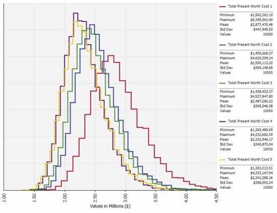 alternatives and the probability curve envelopes of the total cost for each alternative were generated.