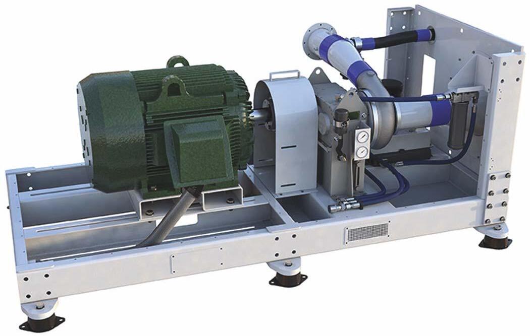 centrifugal turbo volute impeller, and a speedincreasing gearbox with a standard VFD for flow control instead of variable vanes. As mentioned, the main differences are that they are not driven by ultra-high speed motors with sophisticated VFDs and controls (as is the case with high-speed turbo blowers), which don’t have the complexities of a dualpoint control system that uses two sets of variable vanes, as is the case with traditional integrally geared units. Variable vane linkages need periodic cleaning and can be difficult to access, so eliminating the vanes removes this maintenance task. A regular 1800-revolutionsper-minute (rpm) or 3600-rpm motor drives the low-speed blowers, allowing the installation of common VFDs to achieve flow/pressure control. Conventional programmable logic controllers (PLCs) are also used to control the units.