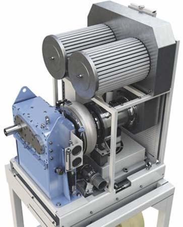 control, as is the case with traditional integrally geared blowers, and allowing the use of standard motors, unlike gearless turbo blowers with noncontact bearings. The main components of the gearbox are depicted in Figure 3. The units are typically in an enclosure that’s assembled at the factory and are ready for installation upon arrival. Figure 4 shows typical enclosures for direct-driven low-speed turbo blowers.