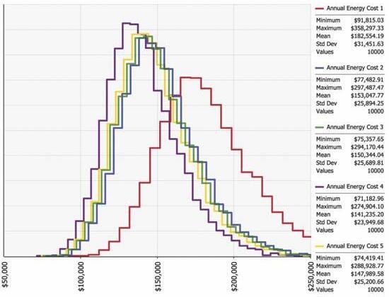 The Monte Carlo method is a broad class of computational algorithms that rely on repeated random sampling to obtain numerical results. The method involves using random values within a certain range to solve for a variety of possible outcomes, and thus provide a realistic statistical evaluation. This is often used in physical and mathematical problems and is most useful when it’s difficult or impossible to use other approaches. Monte Carlo methods are mainly used in three problem classes: optimization, numerical integration, and generation of draws from a probability distribution. In this case, each of the evaluated options has multiple variables that make it impossible to predict a specific result without doing multiple iterations of the different variable combinations. Thus, a Monte Carlo simulation is required to combine the different alternatives in a probabilistic distribution.