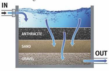 Pretreatment is the first stage of the desalination process. When seawater arrives at the plant, it goes through a pretreatment process to remove algae, organic materials, and other particles. Seawater is pumped into multimedia filter tanks, which include layers of anthracite and sand atop a bed of gravel. Once filtered, the water moves into the next stage of desalination.