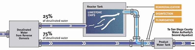 Once the desalination process is complete, the water moves to the product water tanks, where it is then pumped 10 mi to the SDCWA’s second aqueduct in San Marcos. Here, the water is blended with the regional supply and transported to the surrounding communities.