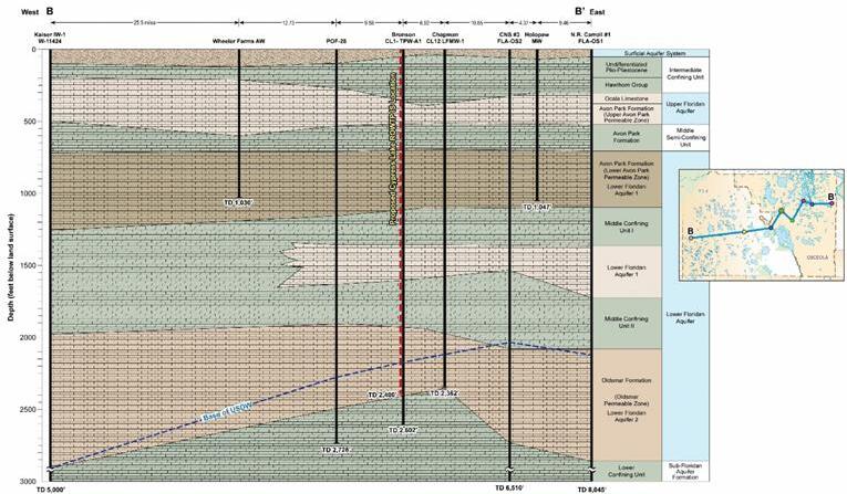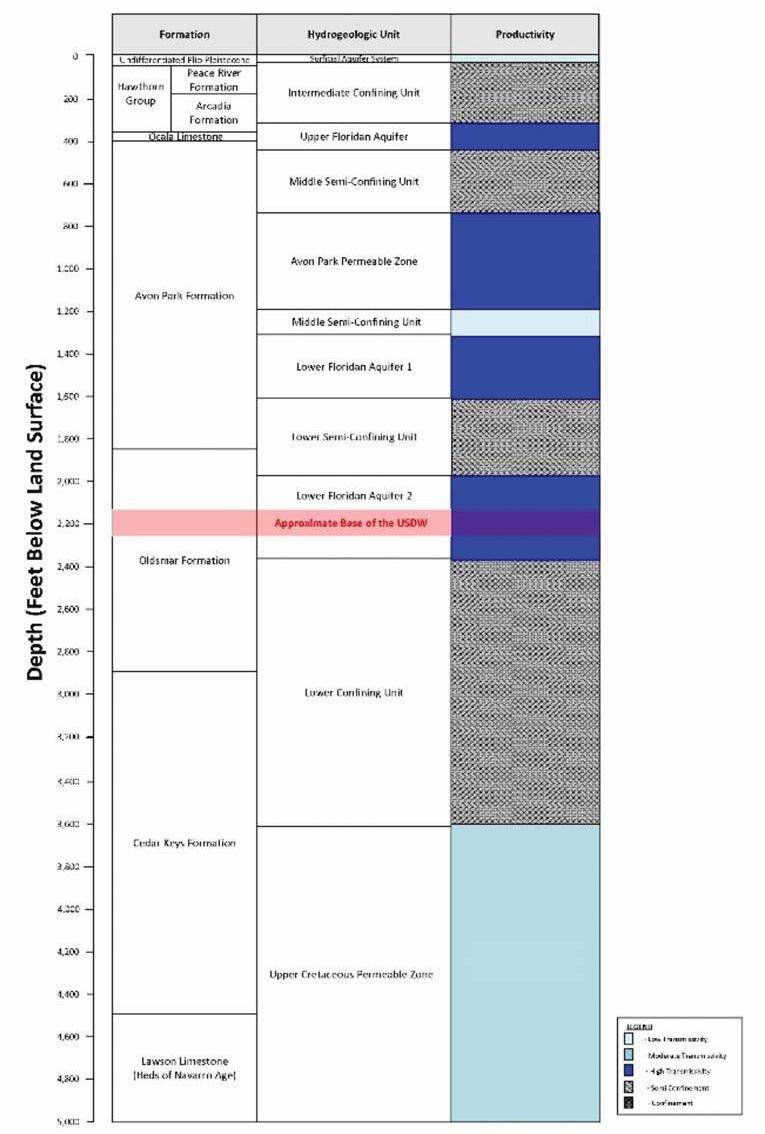 There is only a small portion of the aquifer that is high-quality freshwater, and lower zones of the aquifer are brackish water and saline water. Saltwater, being heavier than freshwater, sinks to the deepest points and remains undesirable for potable water use.