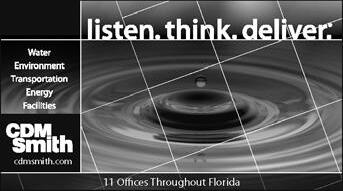 The Post Office will not forward your magazine. Do not count on getting the Journal unless you notify us directly of address changes by the 15th of the month preceding the month of issue. Please do not telephone address changes. Email changes to changes@fwrj.com, fax to 352-241-6007, or mail to Florida Water Resources Journal, 1402 Emerald Lakes Drive, Clermont, FL 34711