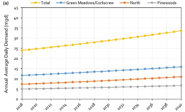 As a first step, and with engineering assistance from Carollo Engineers Inc. (Carollo), LCU projected its system’s maximum monthly average demands (MMADs) and annual average demands
