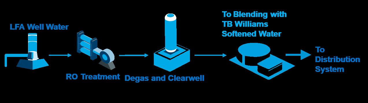The LCU currently draws water from two sources: groundwater and surface water. The majority of demand is supplied by groundwater from three regional aquifers, which is pumped by 121 production wells and five aquifer storage and recovery (ASR) wells. The remainder is supplied by surface water from the Caloosahatchee River (C-43 canal). Five WTPs located in LCU’s four service areas, which are linked by several interconnects, treat this source water.