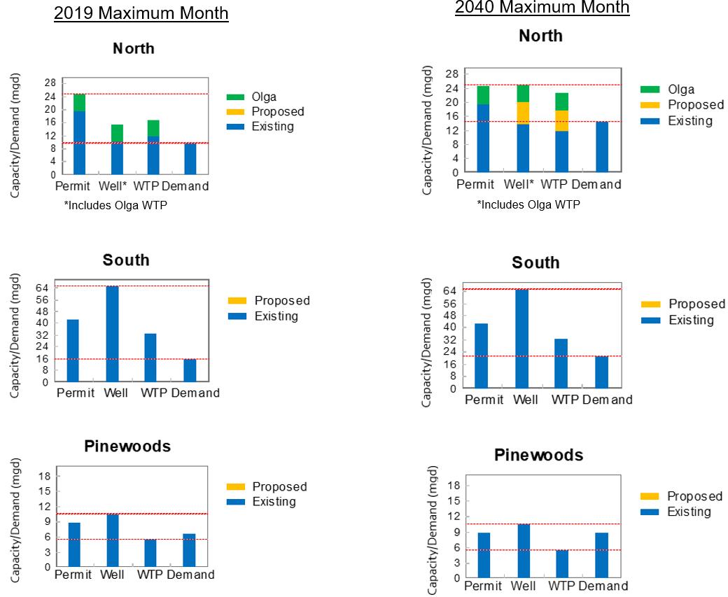 S WTPs: North Lee County WTP, Olga WTP, Corkscrew WTP, Green Meadows WTP, and Pinewoods WTP.