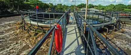The Spiraflo clarifier from Lakeside Equipment is a peripheral feed clarifier designed for the removal of suspended solids in a primary, secondary, or tertiary clarification system. Wastewater enters the outer perimeter of the clarifier tank and is directed along the narrow raceway formed by the skirt and the outer wall. This flow pattern dissipates the wastewater’s hydraulic energy as it flows around the raceway, eventually spiraling down underneath the skirt and into the main settling area. The flow travels inward from the skirt toward the center of the tank, coinciding with the direction of the sludge, and the clarified water rises into the centrally located effluent weir trough. The combination of the spiraling flow pattern and the skirt eliminates all possibility of shortcircuiting and provides better utilization of the total tank volume for more effective settling. (www.lakeside-equipment.com) S