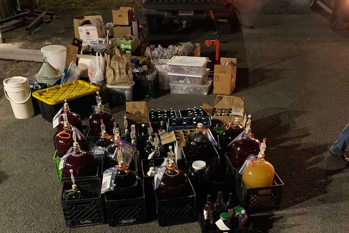 It’s legal to make limited amounts of wine at home in Alabama, but it’s illegal to have more than 15 gallons of homemade wine or beer at a time. Police photos show multiple fermenting vessels filled with what appears to be more than 100 gallons of white and red liquid.