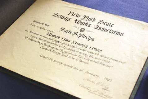 New York State Sewage Works Association’s Kenneth Allen Memorial Award given to Dr. Phelps for his paper, “A Laboratory Study of the Guggenheim Bio-Chemical Process,” dated Jan. 22, 1943.