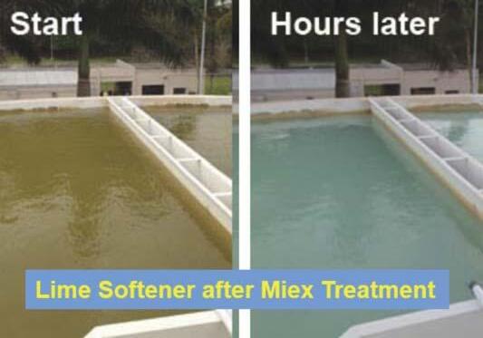 The resin is mixed with the raw untreated water in a covered basin. The resin has a large particle surface area and magnetized iron that allow the resin to flocculate into larger particles as it rises, and the mixing shearing force is reduced. As the particles combine, they become heavier and fall back down into the mixer. The treated water flows upward through tube settlers to minimize resin loss. The anionic exchange system produces much higher-quality water compared to air feed ozone treatment, and it reduced both chemical usage and energy consumption.