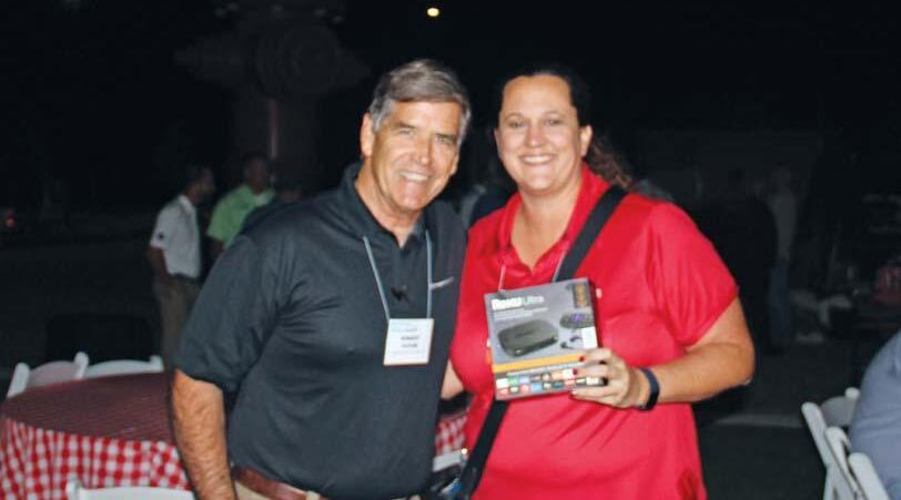 Standing with the donated microscope are (left to right) Ron Trygar, TREEO Center senior training specialist; Carol Hinton, TREEO Center director; Susan Tedder; and Warren Tedder.