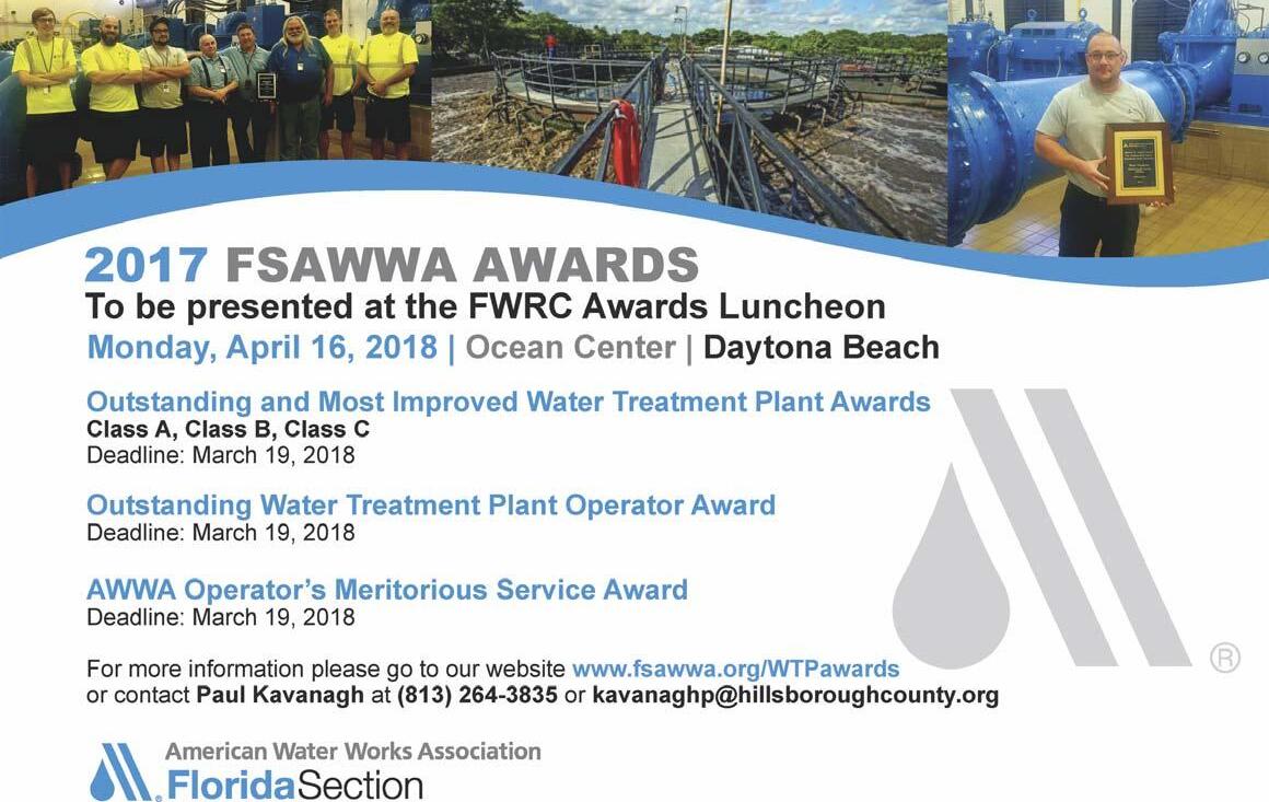 The Post Office will not forward your magazine. Do not count on getting the Journal unless you notify us directly of address changes by the 15th of the month preceding the month of issue. Please do not telephone address changes. Email changes to changes@fwrj.com, fax to 352-241-6007, or mail to Florida Water Resources Journal, 1402 Emerald Lakes Drive, Clermont, FL 34711