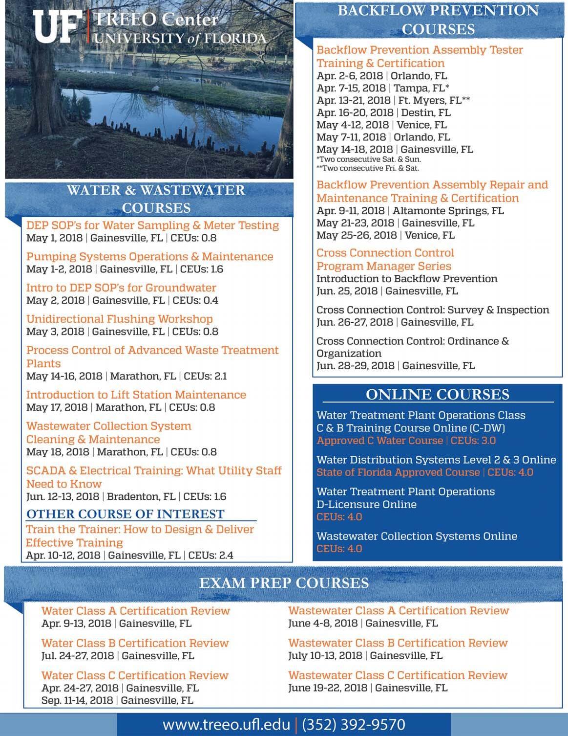 The TREEO Center plays a major role in the continuing education for environmental professions. Currently in its 40th year, the Center offers online courses, in addition to its face-to face-offerings in Gainesville, as well as in satellite locations all over the world. S S