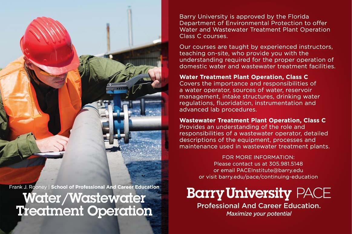 The Coral Springs Improvement District is accepting applications for the position of Wastewater Lead Operator. Applicants must have a valid Class A Wastewater treatment license and a minimum of 3 years supervisory experience. Must have a valid Florida driver’s license and pass a pre-employment drug screening.