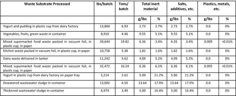 Table 1. Veolia’s Depackaging Process Contaminant Testing Results