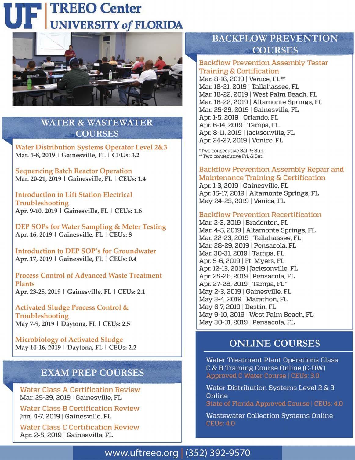 Reclaimed Water Distribution C, B & A............................$325/$325 (Abbreviated Course)....................................................$125/$155