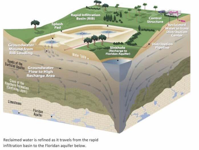 Reclaimed water is refined as it travels from the rapid infiltration basin to the Floridan aquifer below.