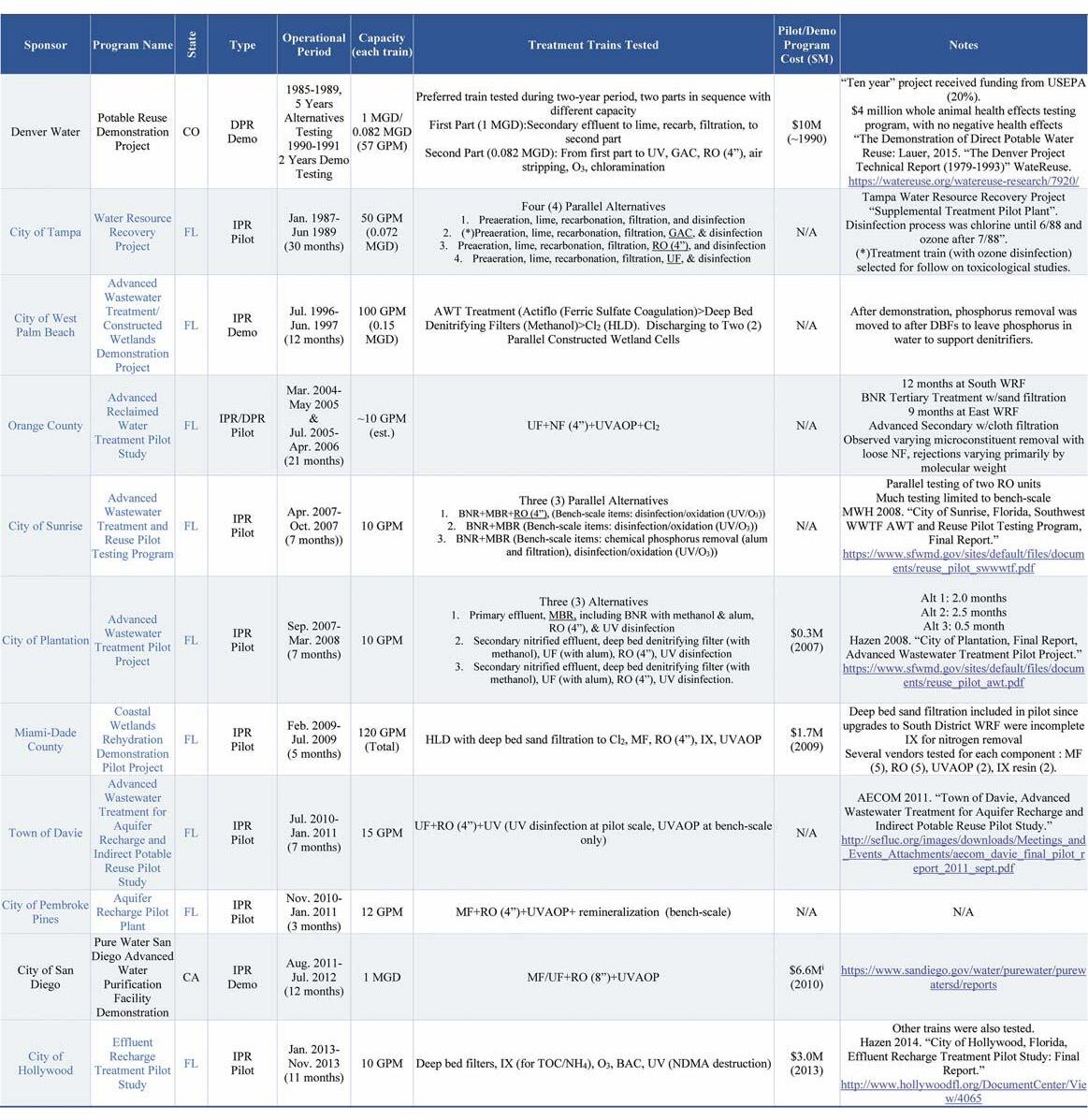 24 Potable Reuse Pilots and Demonstrations: A Review of Flow, Treatment, and Costs—Luke A. Mulford, Emilie Moore, Dave MacNevin, Jennifer Ribotti (née Roque)