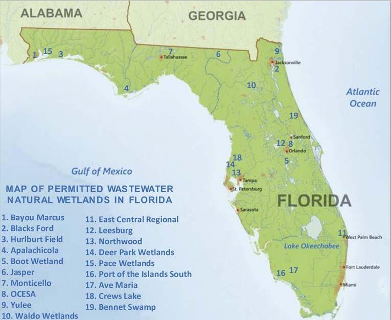 S Converting the City of Lake City’s wastewater effluent disposal system into constructed treatment wetlands, reducing the system’s TN loading to the Ichetucknee Springshed by up to an estimated 84 percent and nitrate load by more than 89 percent.