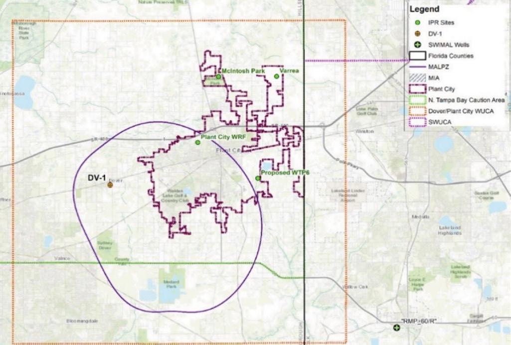 To determine the best location for the injection well, the city’s consulting team performed extensive groundwater modeling (Figure 2). The city is located within the Dover/Plant City Frost Freeze Management Plan (SWFWMD, 2010), developed to reduce impacts from increased