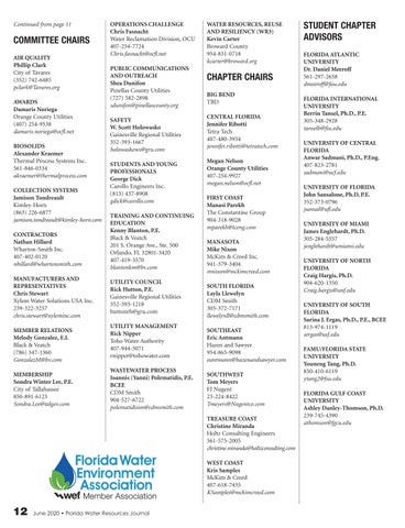The Post Office will not forward your magazine. Do not count on getting the Journal unless you notify us directly of address changes by the 15th of the month preceding the month of issue. Please do not telephone address changes. Email changes to changes@fwrj.com, fax to 352-241-6007, or mail to Florida Water Resources Journal, 1402 Emerald Lakes Drive, Clermont, FL 34711