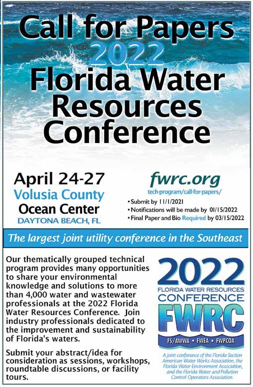 The Post Office will not forward your magazine. Do not count on getting the Journal unless you notify us directly of address changes by the 15th of the month preceding the month of issue. Please do not telephone address changes. Email changes to changes@fwrj.com, fax to 352-241-6007, or mail to Florida Water Resources Journal, 1402 Emerald Lakes Drive, Clermont, FL 34711