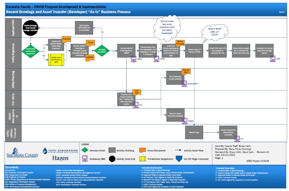 The county authorized the team of Hazen and Sawyer (Hazen) and Veith Engineering & Business Solutions (VEBS) to assist in implementing the county’s CMOM program to achieve its vision, mission, and goals. The key to achieving the CMOM vision for its management program required the enhancement and creation of existing and new resources, processes, and tools.