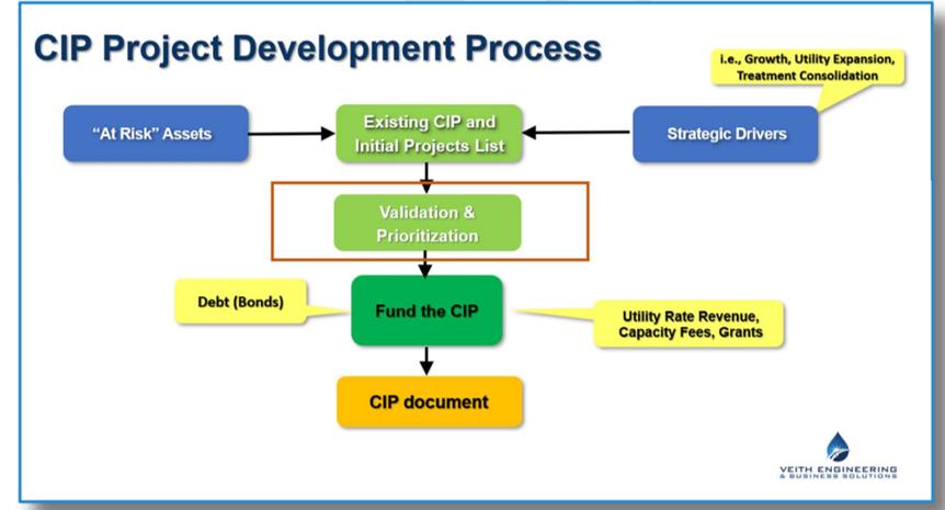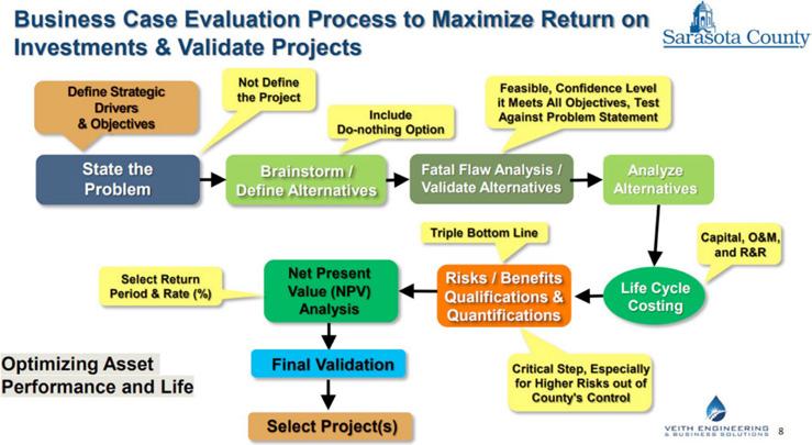 The primary focus of this article is the presentation of the new management system processes and decision support tools implemented and used by the Sarasota County Public Utilities (SCPU) engineering division, planning, asset management, and regulatory work groups and the resulting benefits. Business case evaluation (BCE), capital improvement plan (CIP) prioritization, collaborative project delivery, record drawing/asset onboarding decision support tools, and data warehouse framework will be discussed, and examples will be given.